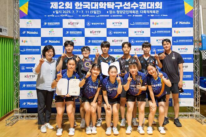 국립창원대학교 탁구부가 충남 청양군민체육관에서 열린 ‘제2회 한국대학탁구선수권대회’에서 남녀부 단체전 동반 우승을 차지했다. 대회는 지난 7일부터 11일까지 진행됐다.