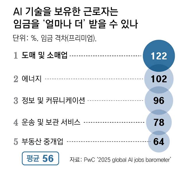 이 같은 AI 디바이드는 또 다른 ‘임금 격차’로도 이어지는 등 악순환을 낳을 수 있다. 글로벌 컨설팅 업체 프라이스워터하우스쿠퍼스(PwC)는 ‘2025 글로벌 AI 일자리 바로미터’ 보고서에서 AI에 더 많이 노출된 산업의 직원 1인당 매출 성장률이 그렇지 않은 산업보다 3배가량 높았으며, AI 기술을 보유한 직원의 임금이 그렇지 않은 직원의 임금 대비 56% 높게 나타났다고 밝혔다.