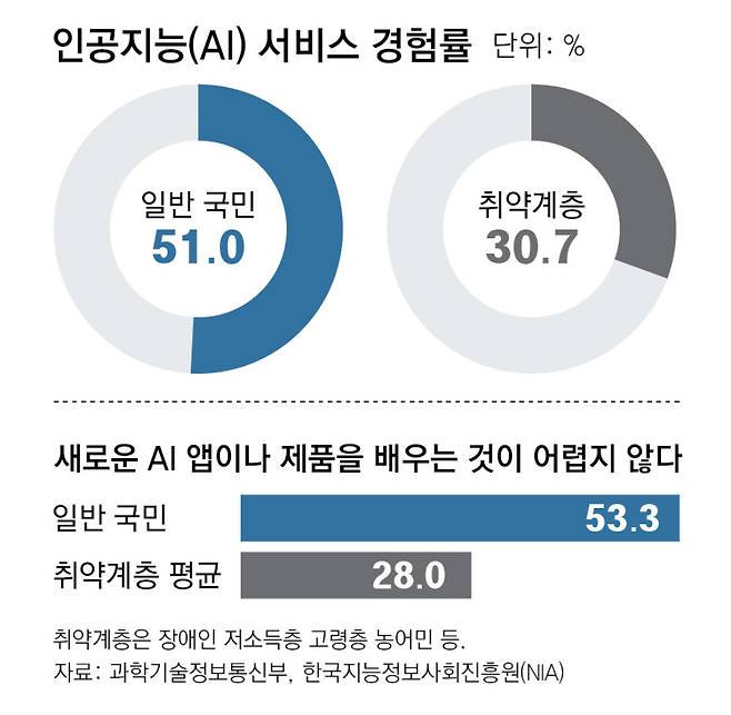 ● 취약계층 AI 경험률 20%포인트 낮아