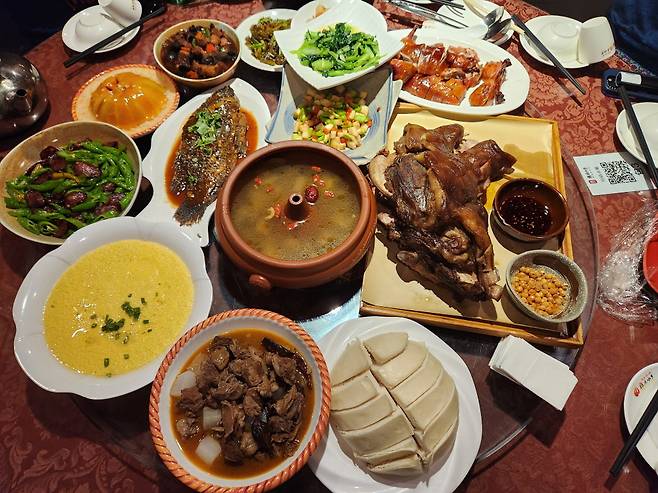 수백 개의 옹기 항아리와 물레 장식으로 꾸며진 입구부터 이족 특유의 흙돌 건축, 전통 무늬 장식까지 민속적인 분위기가 가득하다. 대표 메뉴는 이족 방식으로 찐 '증기솥 닭(汽锅鸡)'과 향신료를 더한 양고기 요리, 메밀전병 등으로, 깊은 풍미와 특색 있는 조리법의 음식을 만날 수 있어 석림을 관광하는 외국인 관광객들도 많이 찾는다. 다만 특유의 향이 있어 음식은 호불호가 있을 수 있다.