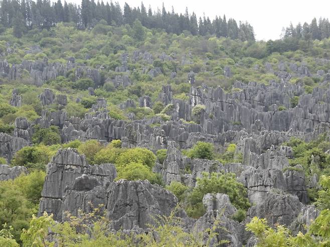 춘성 리조트에서 차량으로 약 1시간 30분 이동하면 만날 수 있는 석림은 유네스코 세계자연유산에 등재된 명소다. 약 2억7천만 년 전 바다였던 지형이 융기하면서 형성된 이 지역은, 석회암이 침식과 풍화로 깎여 생긴 거대한 석회암 기둥들이 숲처럼 빽빽하게 들어서 있다.