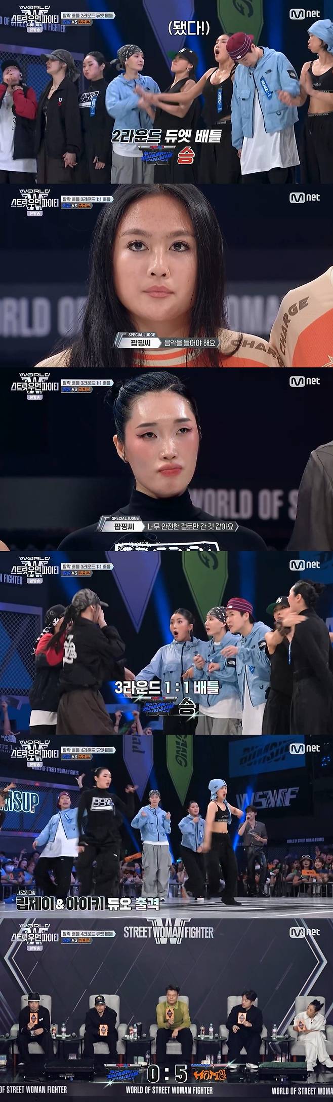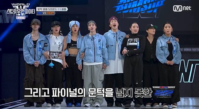 15일 방송된 Mnet '월드 오브 스트릿 우먼 파이터'(이하 '월드 오브 스우파') 8회에서는 파이널을 앞두고 범접(BUMSUP)과 모티브(MOTIV)의 탈락 배틀이 진행됐다.