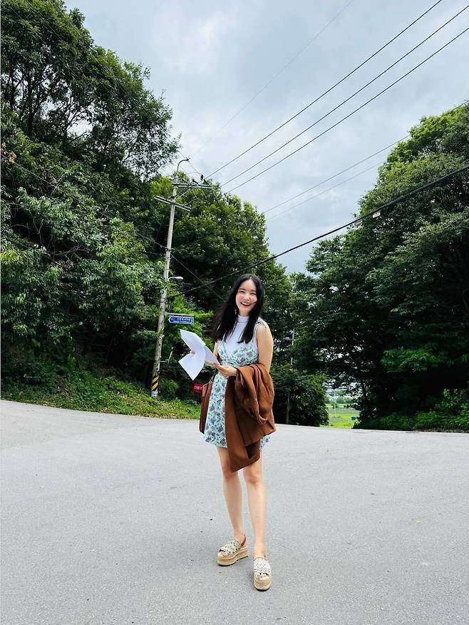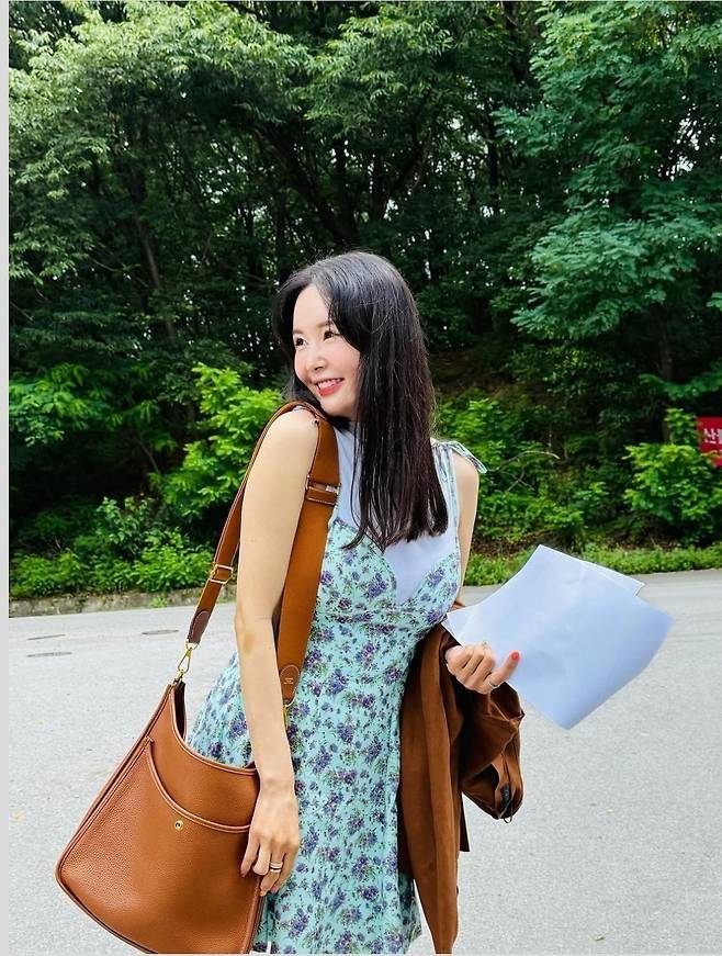 공개된 사진 속 장영란은 청량함이 가득 담긴 민트 플라워 패턴 원피스를 입고 여유로운 미소를 지었다.