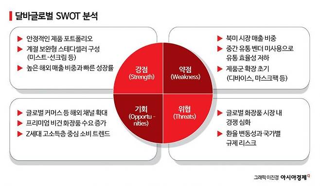 박종대 연구원은 "현재 달바글로벌은 신흥 인디 브랜드로서는 거의 유일하게 실리콘투 등 유통 벤더사와 협업하지 않고 있다"며 "지금은 브랜딩·마케팅 전반을 직접 통제하며 브랜드 정체성을 유지하고 있지만, 문제는 효율성이다. 벤더사를 활용하면 단기간에 3배 이상 매출을 금방 올릴 수 있다"고 덧붙였다.