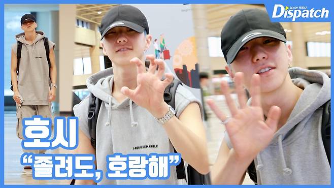 이날 호시는 반쯤 감긴 졸린 눈으로 시그니처 '호랑해' 포즈를 취해 귀여운 매력을 더했다.