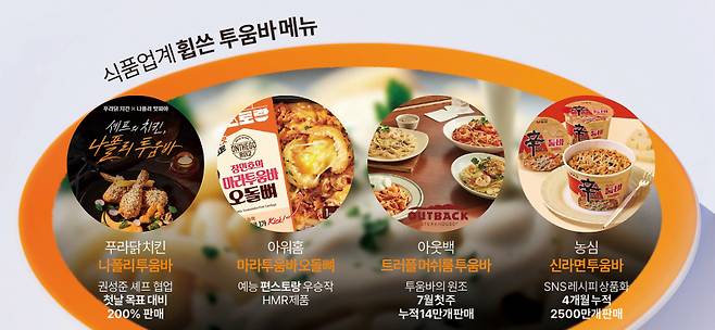 '신라면 툼바'서 시작해 '나폴리 투움바' 기폭제로 원조 아웃백도 신메뉴 내놔 피자에 오돌뼈도 출시돼 '요리 같은 메뉴' 찾는 트렌드