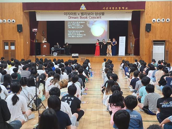 지난 14일 서산시 관내 초등학교에서는 아주 특별한 북콘서트가 열렸다. '책과 음악이 만나는 감성 무대'를 슬로건으로 내건 이 공연은 EZ Art 앙상블이 주최하고 서산시 문화예술교육 지원사업의 하나로 마련됐다.