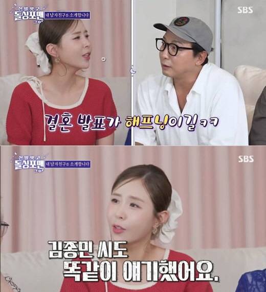 코요태 신지가 문원과의 결혼에 김종민의 실제 반응을 전했다.