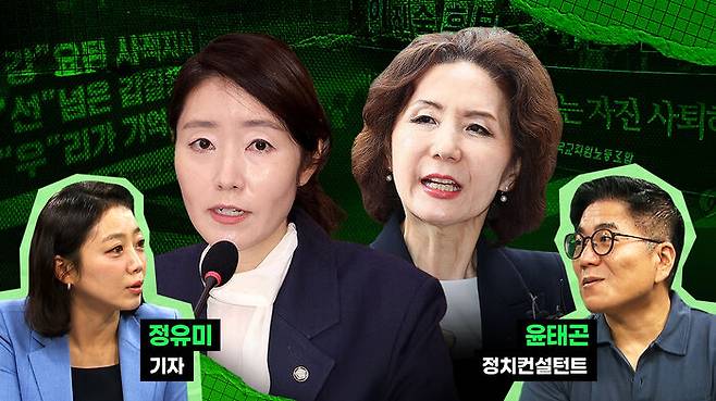 윤태곤 실장 : 여기서 사실관계 하나하나에 따질 건 아니고 강선우 후보자가 여가부 장관 후보잖아요. 그럼 여가부는 여성, 가족, 소수자, 돌봄, 약자, 이런 부분이니까 갑질 이슈는 엄청나게 직관적인 거지 않습니까? 이해도 쉽고. 사람들이 자기를 투영해서, 이입해서 보게 되고 그러니까 반응이 뜨거운 것이고... 이진숙 후보자 같은 경우에도 청문회 봐야 알겠지만 교육부 장관 후보자인데 논문, 자녀를 조기 유학 시켰다, 교육부하고 딱 맞아떨어지는 거잖아요.