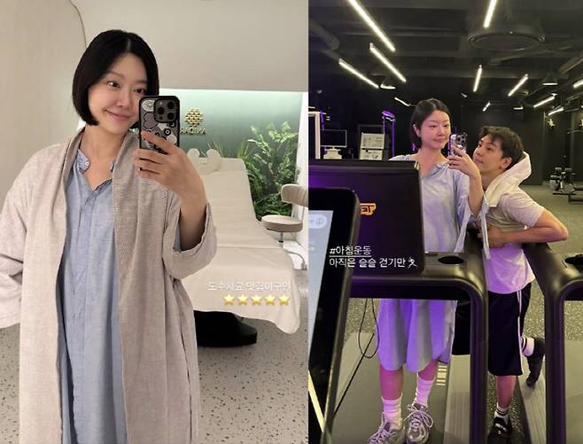 또 산후조리원 내 헬스장에서 남편 임현태와 함께 열심히 땀을 흘리기도. 출산한지 2주밖에 되지 않았음에도 부기 없이 청순한 비주얼을 자랑해 감탄을 안겼다. 쌍둥이 출산 후라고는 믿기 어려운 회복력이다.