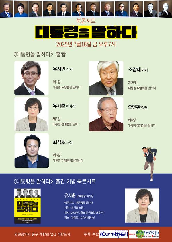 오는 18일 오후7시 인천 중구 개항로 개항도시에서 유시춘 이사장이 책 출간을 기념하는 북콘서트를 갖습니다. 유시민 작가와 조갑제 기자, 오인환 장관도 향후 북콘서트를 기획 중입니다.