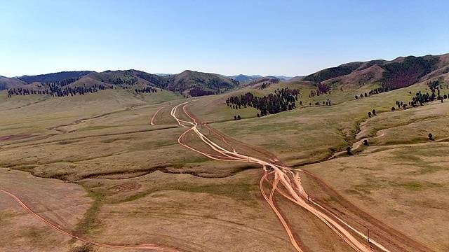 | ▲ 몽골 초원을 달리는 차들은 길이 보이지 않을 경우 초원길로 달린다. 몽골 초원에서는 달리면 길이 된다. 뒷차는 앞차의 바퀴자국을 보고 나아갈 방향을 찾는다. |