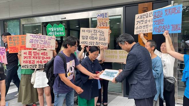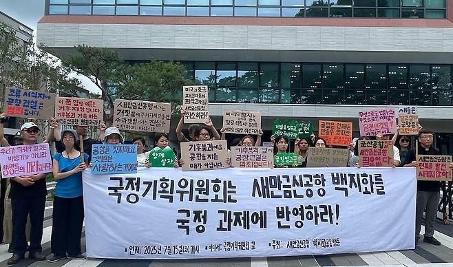 '새만금신공항백지화공동행동'(아래 공동행동)은 7월 15일, 서울 창성동 국정기획위원회 앞에서 기자회견을 열고 새만금신공항 백지화를 국정 과제에 반영하라고 요구했다.