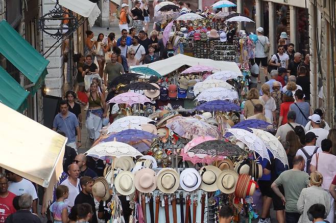| ▲ 2025년 7월 3일(현지시간) 이탈리아 베네치아 리알토 다리(Ponte di Rialto) 인근 상권에 관광객이 많다. |