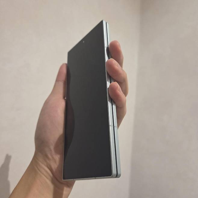 개인적으로는 화면이 커지면서 생기는 장점이 폈을 때보다 접었을 때 더욱 크게 와닿았다. 그동안 갤럭시Z 폴드 시리즈는 접었을 때 화면이 좁아서 답답한 느낌이 들고, 키보드 조작이 불편하다는 지적이 있었다. 이번 갤럭시Z 폴드7은 접었을 때 6.5인치 크기로 갤럭시S 시리즈와 같은 ‘바(bar)’형 스마트폰과 다름없는 모습을 갖췄다. 현재 기자가 쓰는 6.7인치 갤럭시 S25 플러스와 육안상 큰 차이가 없었고 6.2인치 갤럭시 S25와 비교하면 오히려 더 크다. 갤럭시Z 폴드6은 접었을 때 디스플레이 크기가 6.3인치였다. 이전까지는 불완전한 스마트폰(접었을 때)과 소형 태블릿PC(폈을 때)의 조합이었다면 갤럭시Z 폴드7이 되면서 스마트폰과 태블릿PC 두 역할 다 온전히 수행하는 폴더블폰이 된 것이다.