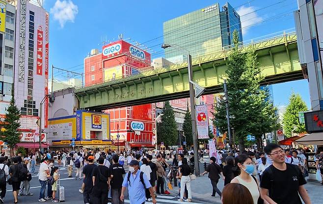 주말 도로가 통제되면 GiGO 아키하바라 1호관 앞은 수많은 관광객들의 포토스팟으로 변화한다.