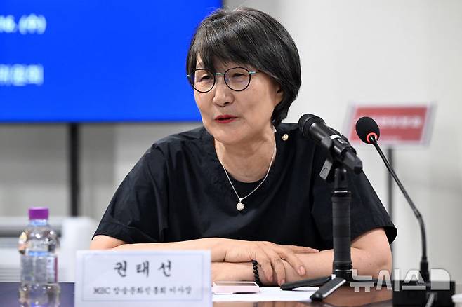 [서울=뉴시스] 추상철 기자 = 권태선 MBC방송문화진흥회 이사장이 16일 오전 서울 종로구 국정기획위원회에서 열린 '미디어혁신범국민협의체(가칭) 추진을 위한 의견수렴 간담회'에서 인사말을 하고 있다. (공동취재) 2025.07.16. photo@newsis.com