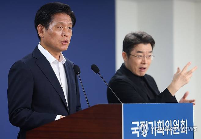 (서울=연합뉴스) 김도훈 기자 = 조승래 국정기획위원회 대변인이 16일 서울 종로구 국정기획위에서 브리핑을 하고 있다. 2025.7.16
