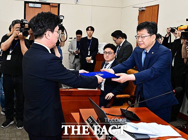 [더팩트ㅣ국회=배정한 기자] 김영훈 고용노동부 장관 후보자가 16일 오전 서울 여의도 국회에서 열린 인사청문회에 참석해 질의에 답변을 하고 있다.