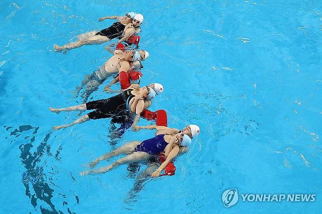 (대구=연합뉴스) 박세진 기자 = 16일 대구 두류다이빙풀장에서 열린 대한적십자사 대구지사의 인명구조요원 신규 과정 교육에서 강습생들이 장비구조 실습을 하고 있다. 강습생들은 장비구조, 수영구조 등 교육을 총 48시간 수강하며 최종 평가를 통해 인명구조요원 자격증을 취득한다. 자격증은 3년간 유효하다. 2025.7.16