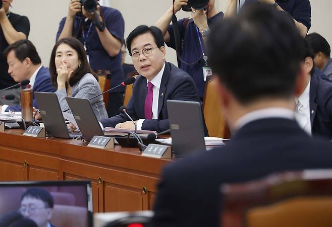 송언석 위원장은 16일 국회 환경노동위원회가 진행한 김영훈 고용노동부 장관 후보자 인사청문회에 참석해 강선우 여성가족부 장관 후보자를 언급했다. 사실상 김 후보자 검증이 아니라 강 후보자 공격을 위한 질의였다.
