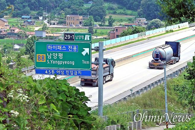 | ▲ 지난 6월 19일 오후 김건희(전직 대통령 윤석열의 부인) 일가의 땅(경기 양평군 강상면 병산리 1000)에서 바라본 중부내륙고속도로 남양평IC 인근. |