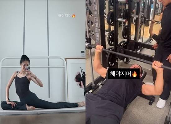 윤혜진, 복귀 앞둔 ♥엄태웅 운동 삼매경에 도발…"까불고 있네"