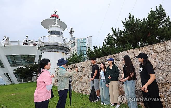 (인천=연합뉴스) 임순석 기자 = 제7회 세계등대의 날을 기념해 16일 인천 중구 팔미도등대에서 진행된 팔미도등대 청소년 체험교실에 참여한 학생들이 등대에 관한 설명을 듣고 있다.