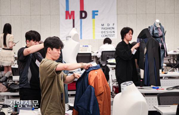 16일 서울 강남구 한국섬유센터에서 열린 MDF 패션디자인 공모전에서 참가 학생들이 작품을 만들고 있다. 비영리 장학재단인 엠디재단이 주최하는 이 행사는 국내외 패션 디자인 관련 학과 학생들의 꿈을 위해 국내 최대 규모의 장학금을 지원하는 공모전으로 올해 6회째를 맞고 있다. 사진=엠디재단 제공