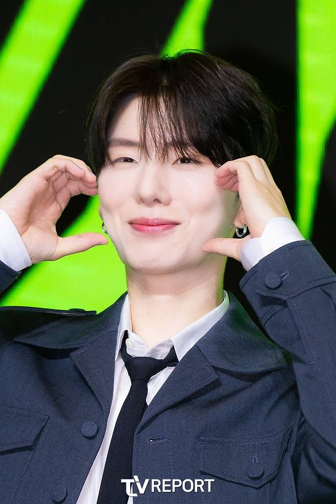 그룹 '몬스타엑스(MONSTA X)' 기현이 16일 오후 서울 영등포구 여의도 콘래드 호텔에서 열린 몬스타엑스 데뷔 10주년 기념 기자간담회에 참석해 포즈를 취하고 있다.