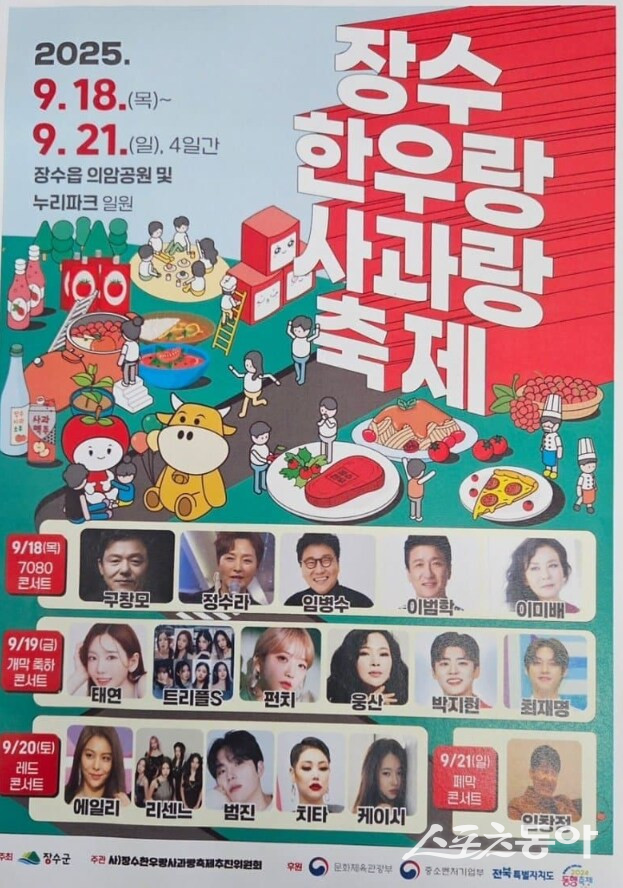 행사를 주최한 장수군은 15일 “제19회 한우랑 사과랑 축제 개막공연 가수 섭외 과정에서 소녀시대 태연의 섭외가 최종 불발됐으나 출연진 후보 명단과 포스터 시안이 외부에 유출됐다”면서 “지역주민과 태연의 팬들에게 본의 아니게 실망을 끼쳐드린 점에 대해 안타까운 마음을 전한다”고 사과했다.