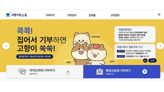 (사진=고향사랑e음 홈페이지 캡처, 행정안전부 제공, 연합뉴스)