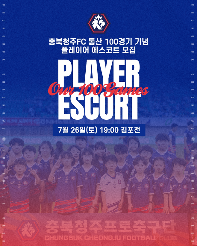 충북청주FC가 오는 26일 청주종합경기장에서 열리는 김포FC와의 '하나은행 K리그2 2025' 22라운드 홈경기를 맞아, 구단 통산 100번째 경기를 기념하는 팬 참여 이벤트를 진행한다.
