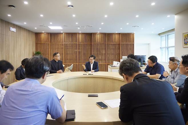 | ▲ 김동연 경기도지사가 1일 오전 도지사 집무실에서 이주노동자 관련 전문가 5명을 초청해 '이주노동자 지원 정책' 마련을 위한 긴급 대책회의를 열었다. |