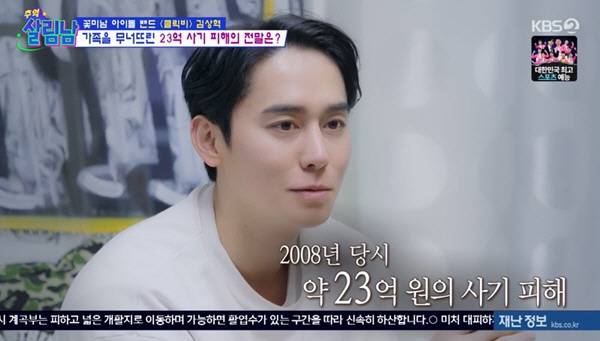 이어 그는 "매달 1천만 원씩 이자를 내다가 어느 날 어머니가 방에서 엉엉 우셨다. 그제야 사정을 알게 됐다"며 "당시 아파트 한 채당 10억 원에 팔았고, 총 23억 원 가량의 피해를 입었다"고 털어놨다.