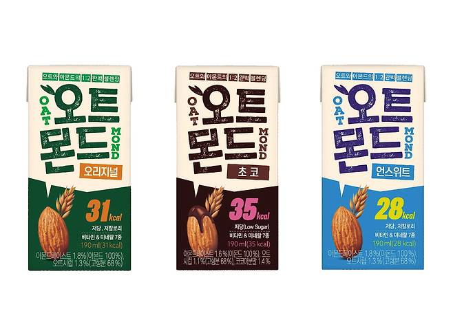 '오트몬드 오리지널' 제품은 귀리와 아몬드를 1대2 비율로 배합하고 사과, 호두, 코코넛 3가지 식물성 원료를 사용했다. 여기에 특허받은 식물 유래 유산균인 '포스트바이오틱스'와 비타민 5종, 미네랄 2종까지 190㎖ 팩에 함께 담았다. 특히 한 팩당 31㎉로 열량과 당 함량을 낮춰 고소하고 은은하게 달콤한 맛이 특징이다.