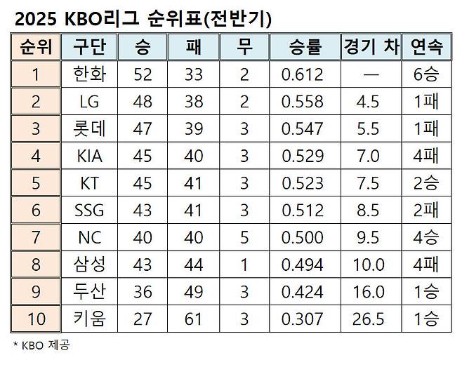한-엘-롯-기…좀처럼 보기 힘든 KBO 순위, 후반기도 이대로?
