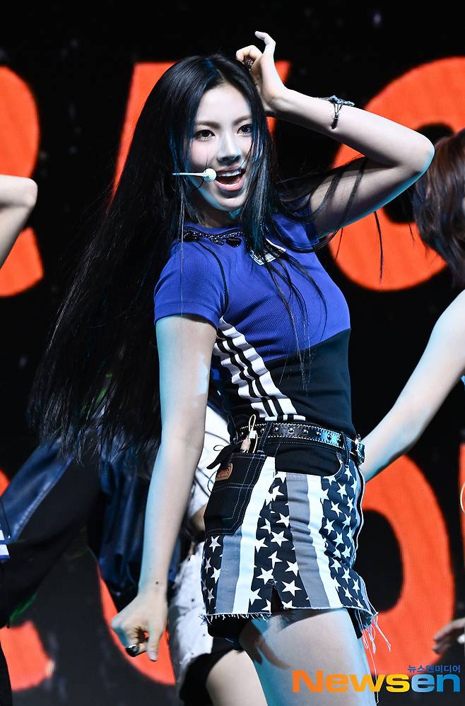 걸그룹 이프아이(ifeye)가 7월 16일 오후 서울 용산구 블루스퀘어 SOL트래블홀에서 열린 2nd EP 물결 낭 : 〈sweet tang〉발매기념 쇼케이스에서 무대를 펼치고 있다.