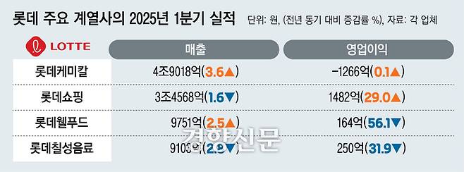 롯데 주요 계열사들의 최근 상황은 녹록지 않다. 롯데케미칼은 글로벌 업황 악화 탓에 2023년 4분기부터 올해 1분기까지 6분기 연속 적자를 기록하고 있다. 신용평가사들은 영업 적자 지속을 이유로 롯데케미칼 신용등급을 하향 조정했다. 그 여파로 모그룹 지주사인 롯데지주와 2대 주주인 롯데물산도 신용등급이 떨어졌다.
