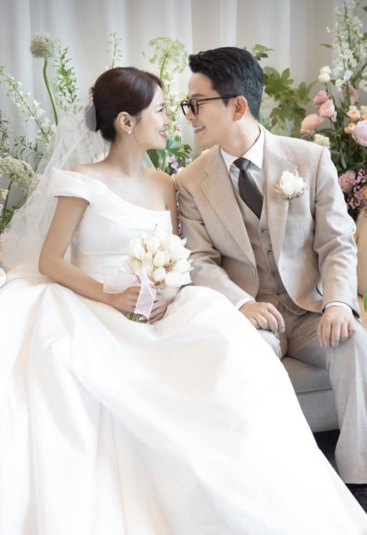 또 다른 사진에서는 나란히 앉은 두 사람이 서로를 마주 보며 환하게 웃고 있어 신혼의 설렘을 가득 전했다. 마지막 사진에서는 김준호가 반지를 끼워주는 순간이 포착돼 결혼식의 감동을 더했다.