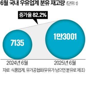 서울우유의 분유 재고량은 지난해 6월 1710t에서 올해 6월 4173t으로 두 배 이상으로 늘었다. 국내 우유 제조사들의 전체 분유 재고량은 지난 3월 3년7개월 만에 처음으로 1만t을 넘긴 뒤 1만t 이상을 유지했다. 올해 들어 우유 소비가 급격하게 위축된 영향이다. 우유업계 관계자는 “비수기인 겨울에는 통상 재고량이 늘지만 2분기에도 재고량이 감소하지 않은 것은 이례적”이라고 말했다.