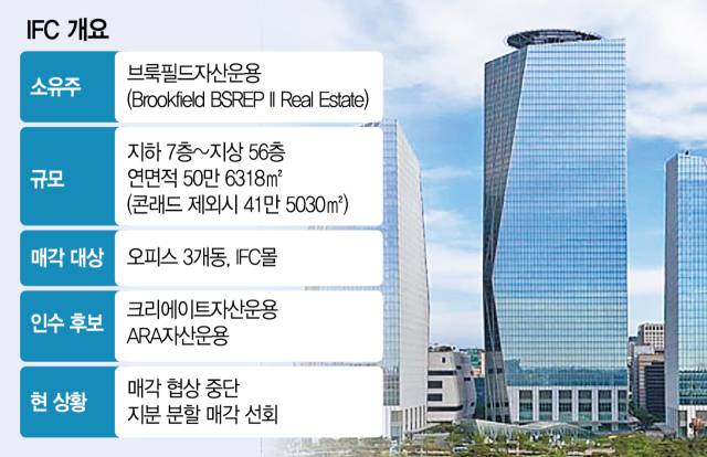 앞서 브룩필드는 지난해부터 서울 여의도 IFC의 오피스 빌딩 3개동과 IFC몰 등 총 4개 자산을 묶어 파는 방안을 추진해왔다.