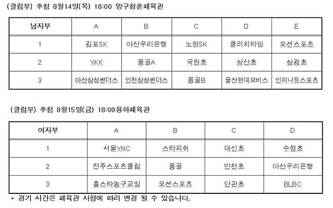 - A조: 김포SK, YKK, 아산삼성썬더스