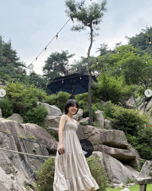 이와 함께 공개된 사진 속 서신애는 단정한 단발머리에 크림색 민소매 원피스를 입고 자연 속에서 환하게 웃고 있는 모습.
