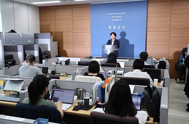 | ▲ 박지영 내란 특검보가 15일 서초구 서울고검에서 진행된 브리핑에서 발언하고 있다. |
