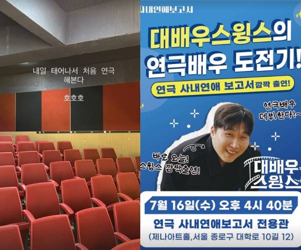 이후 스윙스는 개인 채널에 연극 '사내연애 보고서'에 깜짝 출연한다는 공지를 직접 업로드했으며, 바로 다음 날인 오늘(16일) 무대에 섰다.