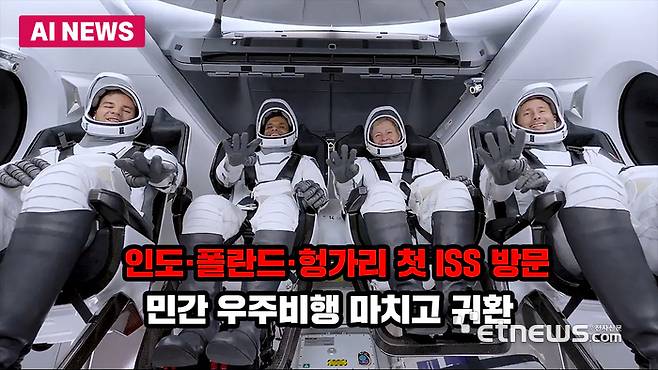 인도·폴란드·헝가리 첫 ISS 방문...민간 우주비행 마치고 귀환