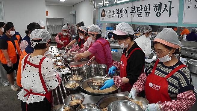 이른 오전부터 센터 직원들과 자원봉사자들은 구슬땀을 흘리며 삼계탕과 밑반찬을 정성껏 준비했고 오전 11시께부터 배식이 시작됐다.
