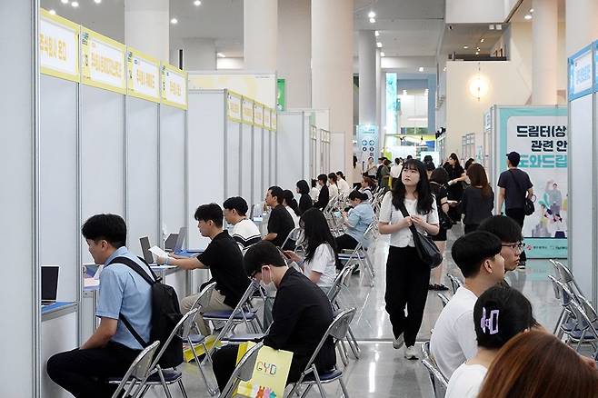 비가 오는 궂은 날씨에도 청년 구직자들은 이력서를 들고 실무 경험의 문을 두드렸다. 이날 행사장은 직무 상담을 받기 위한 청년들로 붐비는 등 구직난 속에서도 다시 한번 희망을 향한 도전의 열기가 가득했다.