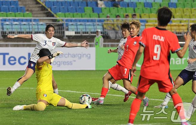 (수원=뉴스1) 장수영 기자 = 16일 오후 경기 수원시 팔달구 수원월드컵경기장에서 열린 2025 동아시아축구연맹(EAFF) E-1 챔피언십 여자부 대한민국과 대만의 경기, 후반전 대한민국 이금민이 슛하고 있다. 2025.7.16/뉴스1